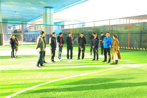 锐强体育集团青岛办事处王总陪市局领导参观了解公园建设情况