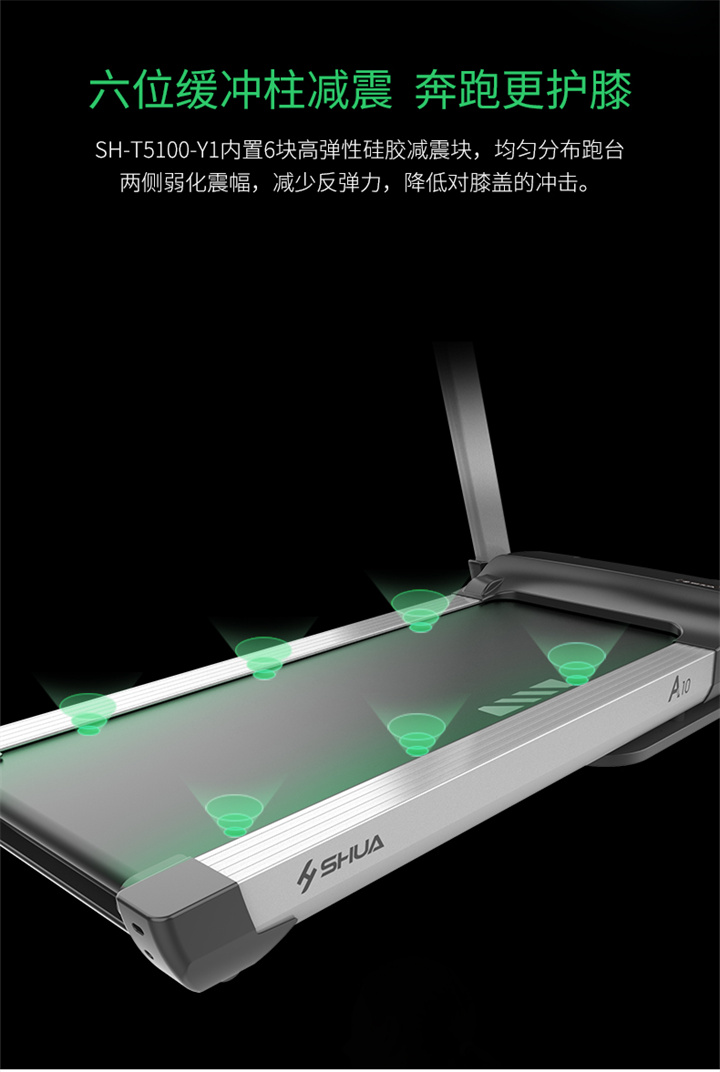 舒华家用乐动在线体育·(China)官方网站-登录入口 SH-T5100持续马力达1.25HP,具有500×1350mm的跑台,运用无线心率接收模块监测心率,运用6位硅胶减震设计,最大承重是126kg,可以满足大多数家庭的使用。
