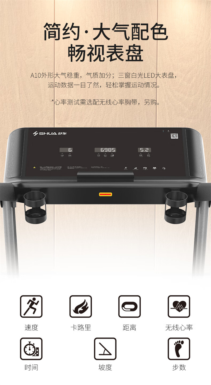舒华乐动在线体育·(China)官方网站-登录入口 SH-T5500采用T18mm的跑板,T1.6 钻石纹的跑带,运用6位硅胶减震,对您跑步中的膝盖进行全方位的呵护,选用手握心率测试,跑步面积达480×1350mm,可承受126kg的使用者使用。