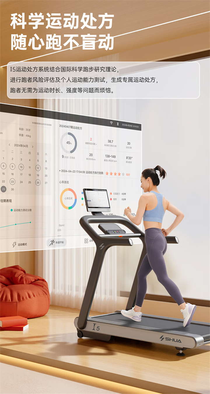 舒华I5智能家用乐动在线体育·(China)官方网站-登录入口 是由舒华体育联合中国体育科学学会、上海体育大学运动科学学院教授陆大江等权威机构、专家共同研发设计。独特之处在于它结合国际科学跑步研究理论,能够针对不同用户进行运动能力测试,并根据测试结果生成因人而异的有氧运动处方。这意味着每个用户都能得到一个适合自己的运动方案,从而更好地达到运动效果。这一创新技术可以确保用户在运动过程中能够保持在最佳的区间状态,从而提高运动安全性和有效性。