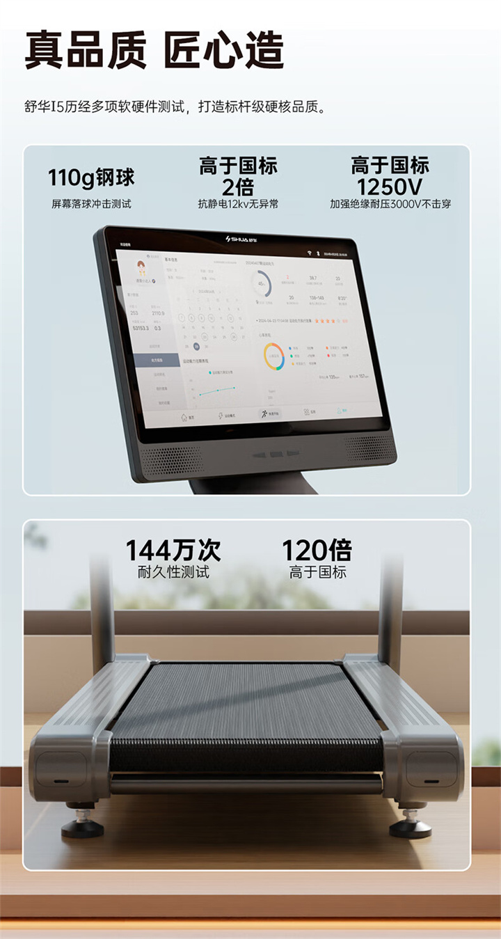 舒华乐动在线体育·(China)官方网站-登录入口 SH-T5500采用T18mm的跑板,T1.6 钻石纹的跑带,运用6位硅胶减震,对您跑步中的膝盖进行全方位的呵护,选用手握心率测试,跑步面积达480×1350mm,可承受126kg的使用者使用。